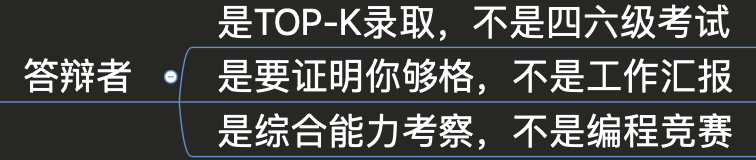 - 答辩,不是你一个人的独角戏 不管是"答",还是"辩",都说明了这是一项有多个角色参与的活动(这是很重要的一点)。很多同学都只关注到了自己,而忘了你的对手/队友——评委。下面将从"答辩者"和"评委"两个角度进行分析——知己知彼,方能早日升级。